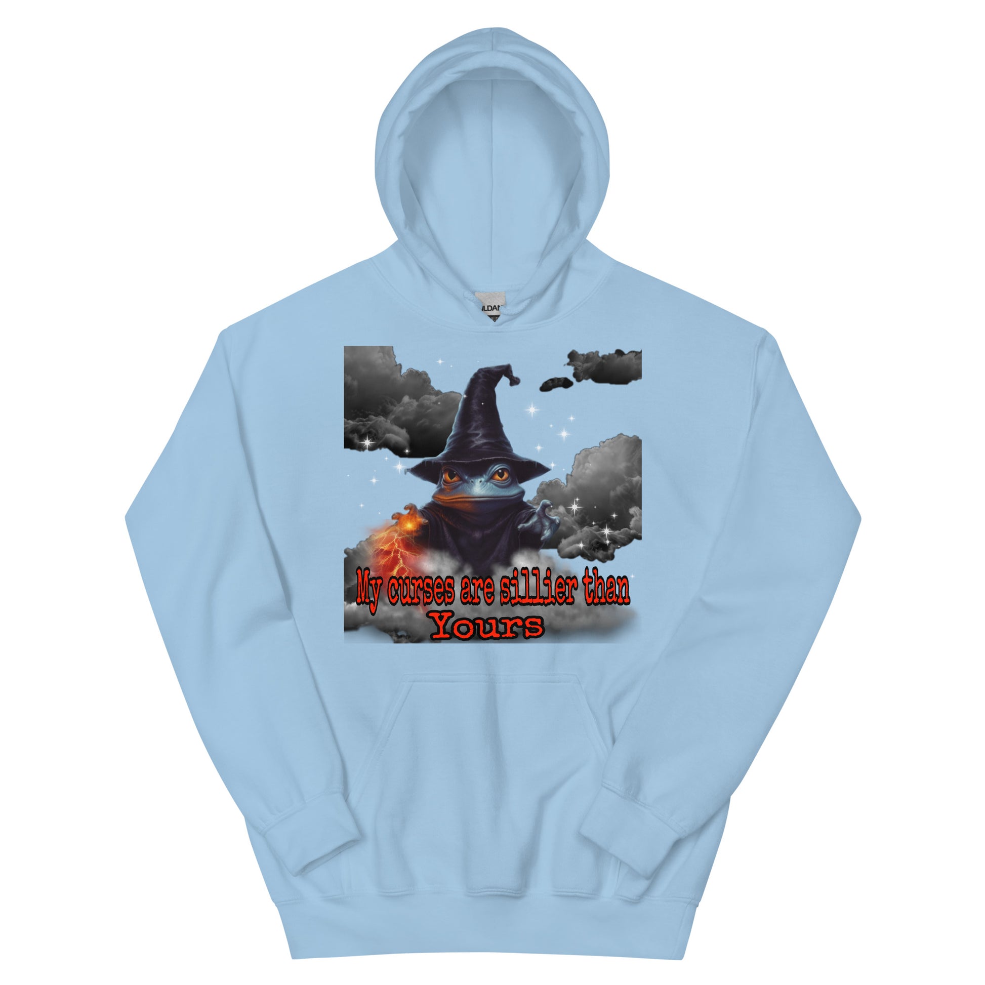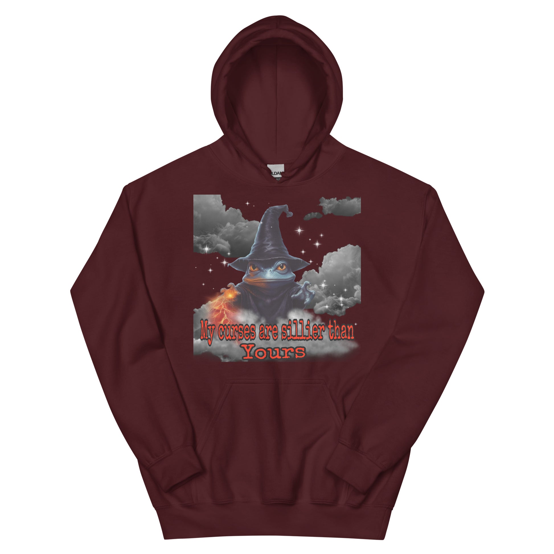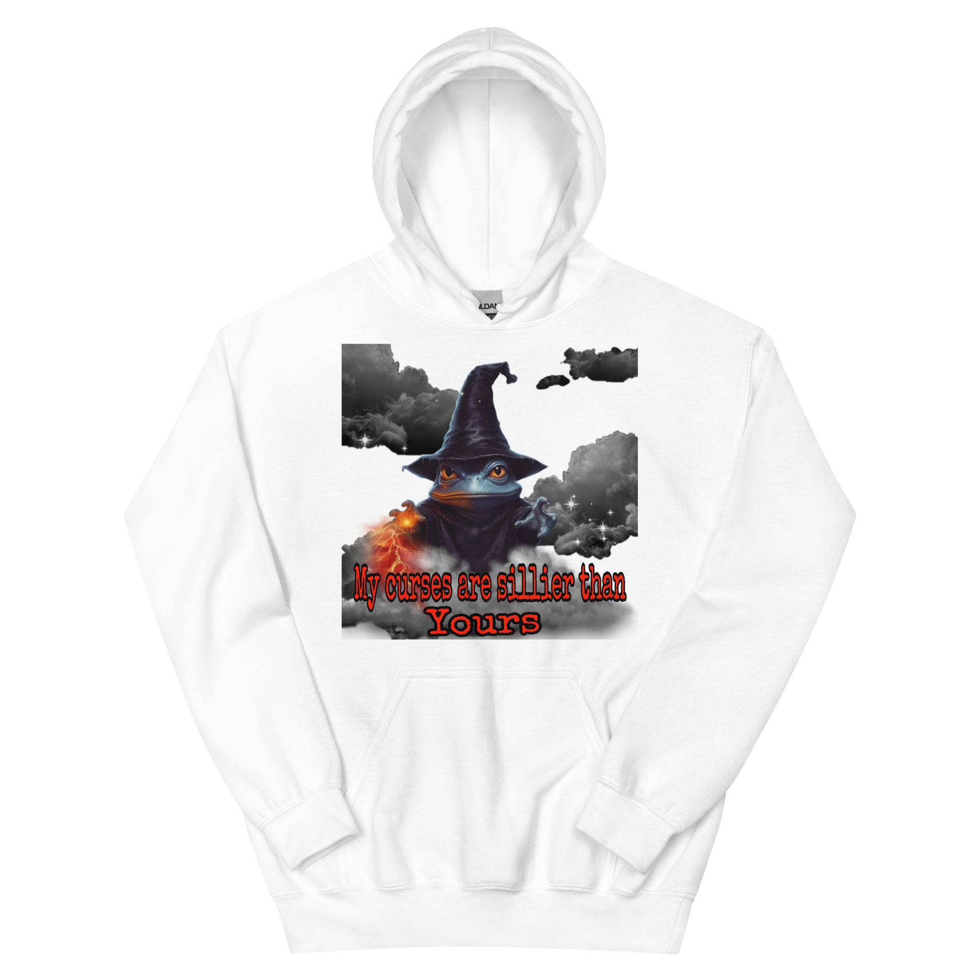 Behold, a wizard's hoodie bearing the proclamation, "My curses are sillier than yours!" Crafted with mystical mastery, this garment exudes an enchanting aura. Adorned with arcane symbols and sigils, it resonates with magical power. The words grace the fabric in an elegant script, evoking a sense of playful mischief. As you wear this bewitching hoodie, you embody the whimsical spirit of a wizard who finds delight in the absurdity of curses. With a mischievous glint in your eye, you proudly invite laughter and mirth, casting spells that tickle the funny bone of your fellow sorcerers.