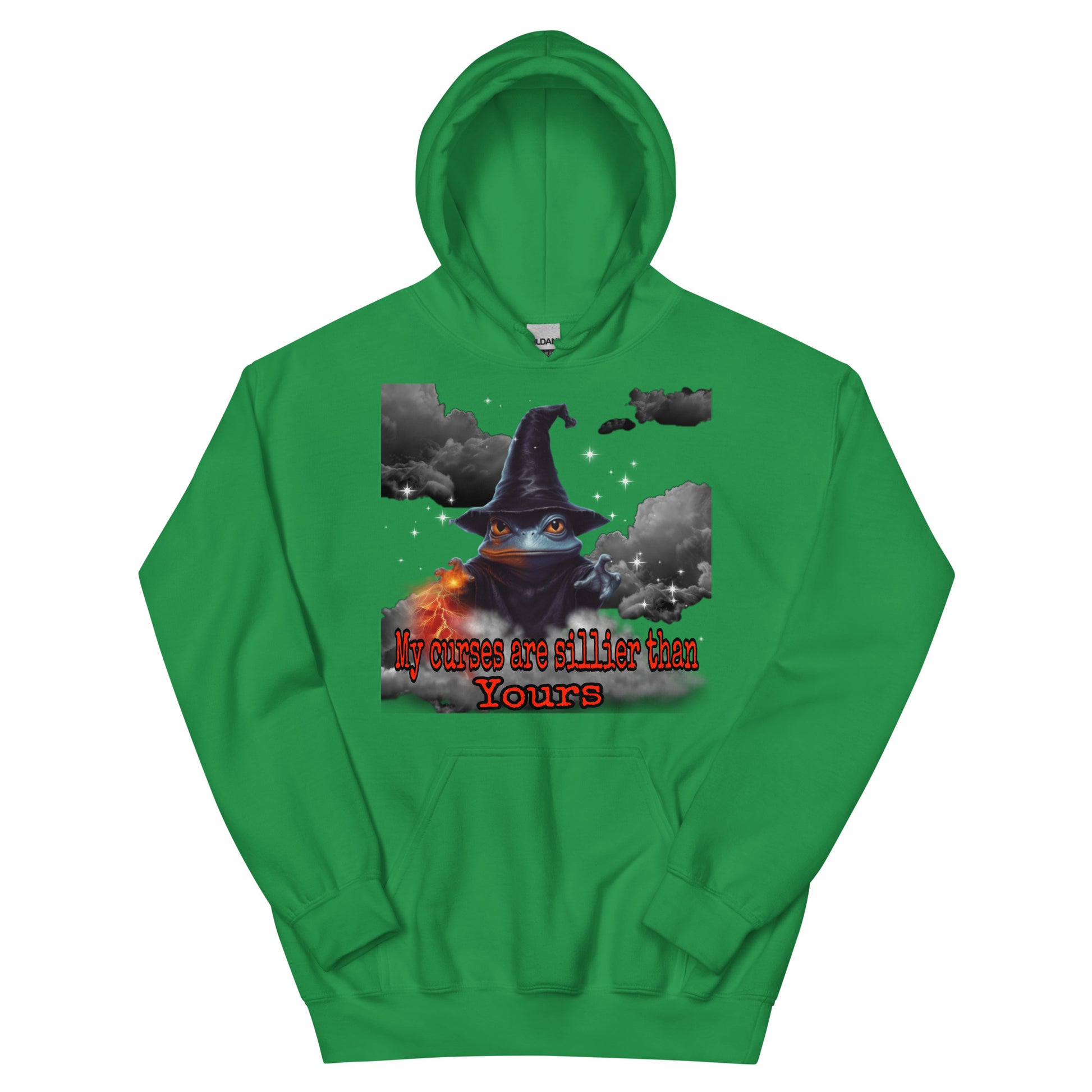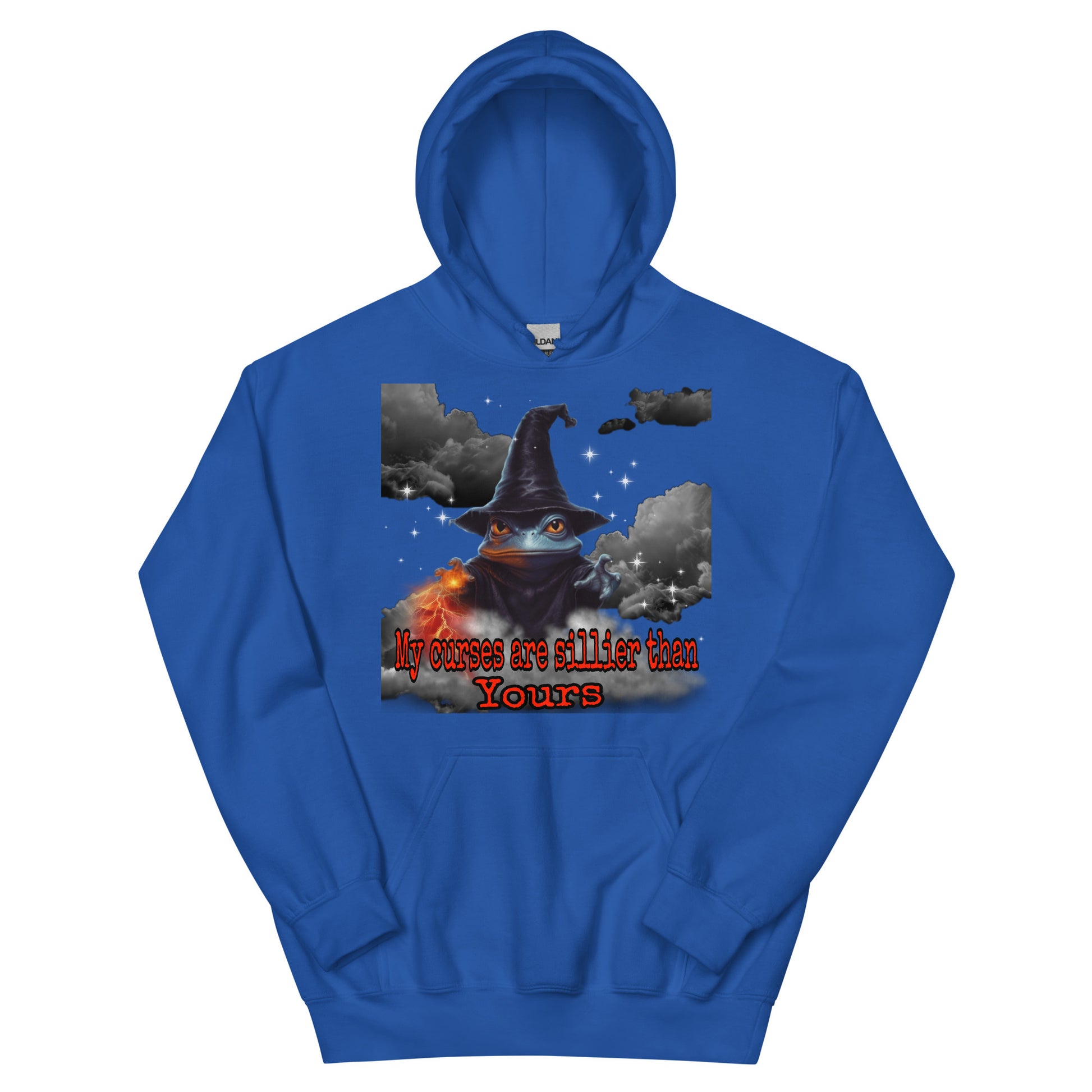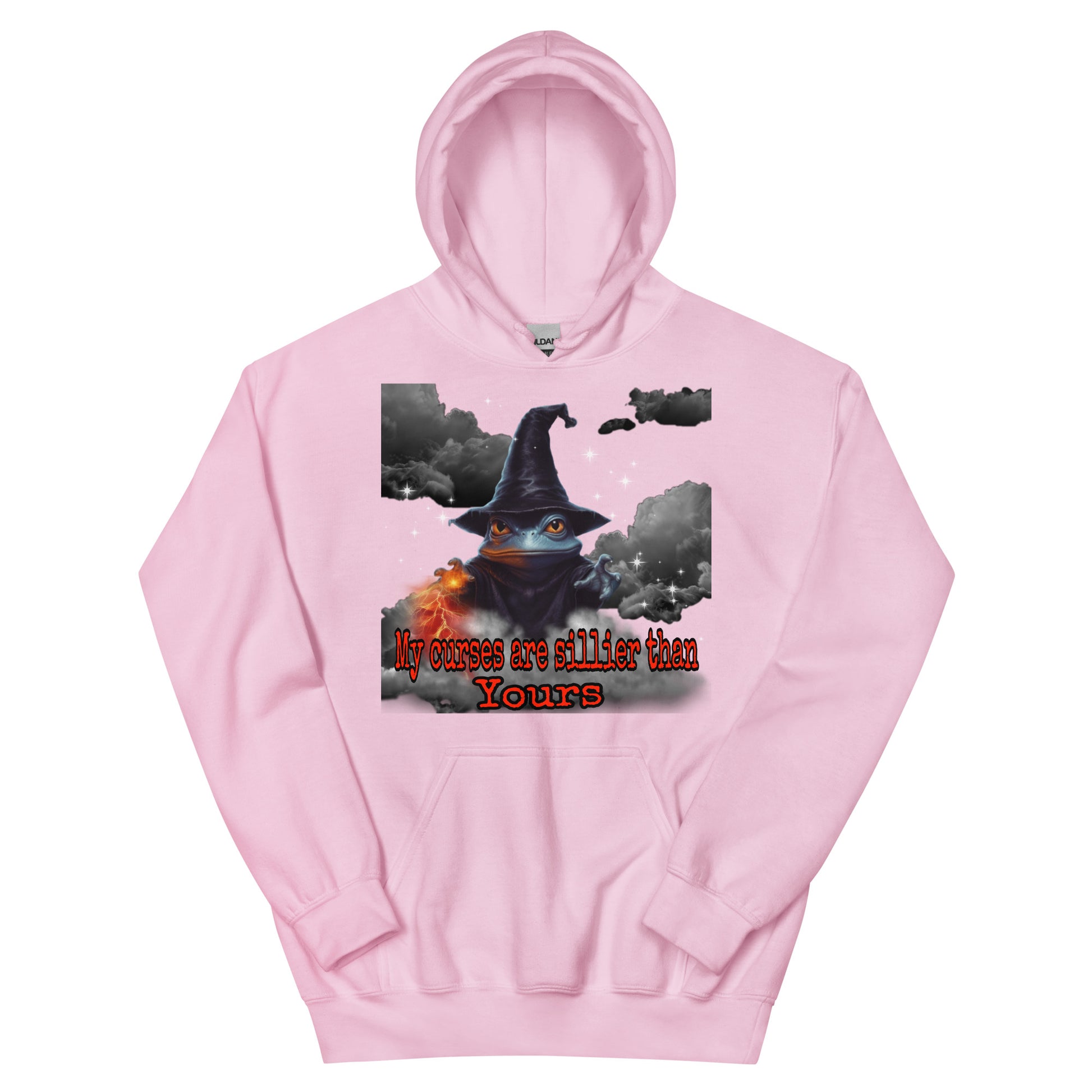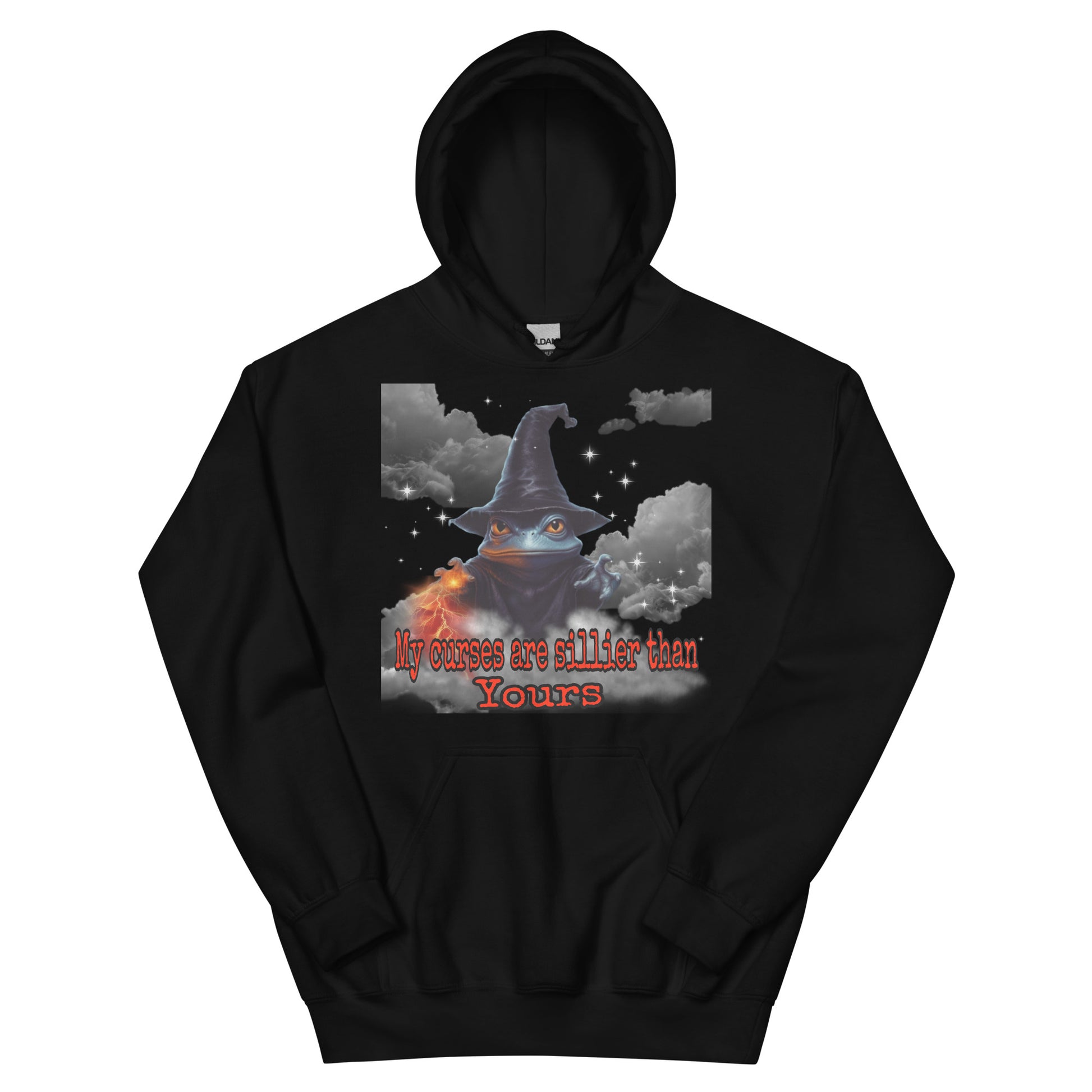 Behold, a wizard's hoodie bearing the proclamation, "My curses are sillier than yours!" Crafted with mystical mastery, this garment exudes an enchanting aura. Adorned with arcane symbols and sigils, it resonates with magical power. The words grace the fabric in an elegant script, evoking a sense of playful mischief. As you wear this bewitching hoodie, you embody the whimsical spirit of a wizard who finds delight in the absurdity of curses. With a mischievous glint in your eye, you proudly invite laughter and mirth, casting spells that tickle the funny bone of your fellow sorcerers.