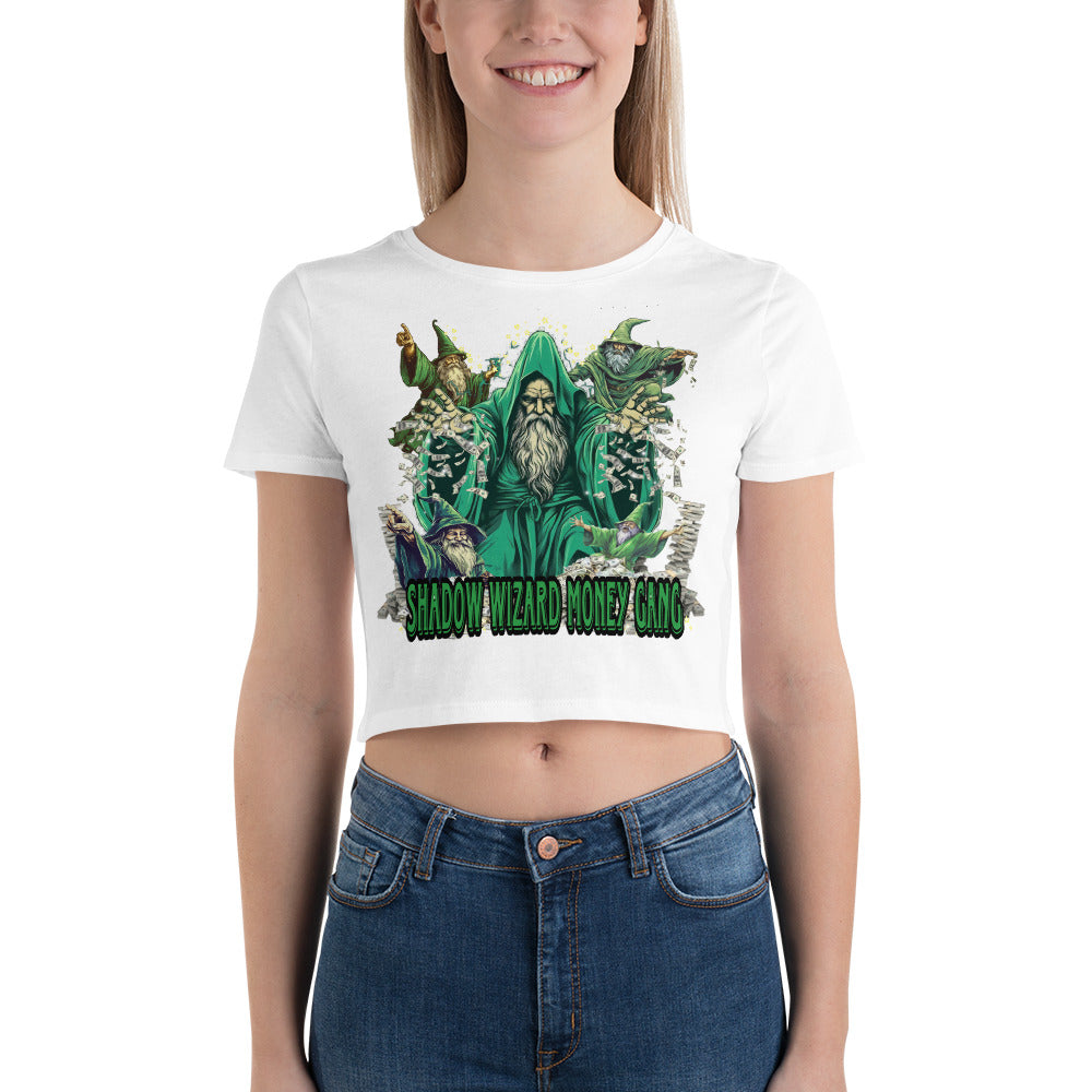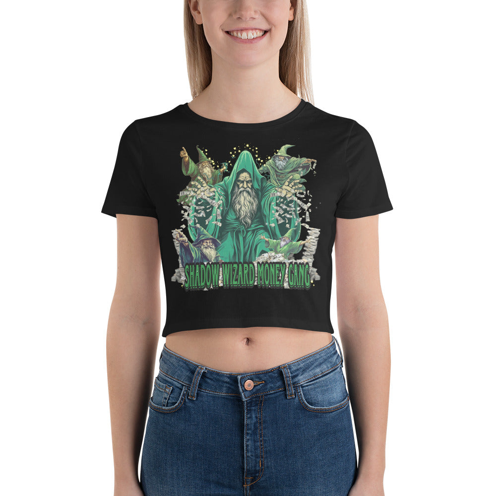 Behold the ethereal allure of the Shadow Wizard Money Gang crop top! Woven with whispers of arcane secrets, this garment drapes the wearer in a mystic embrace. Its dark fabric and mystical symbols reveal the power to command wealth with an enigmatic grace.
